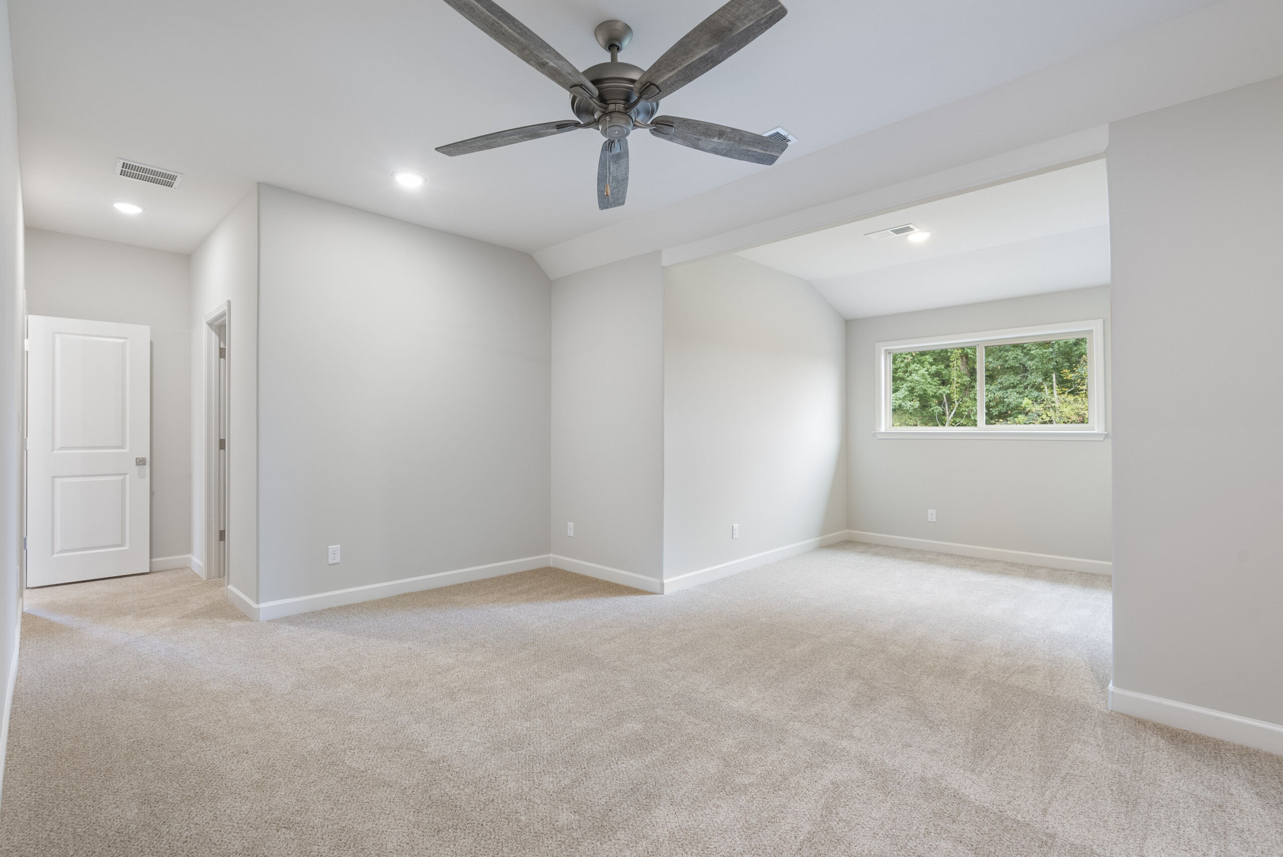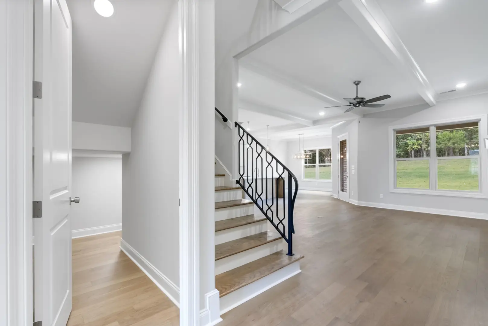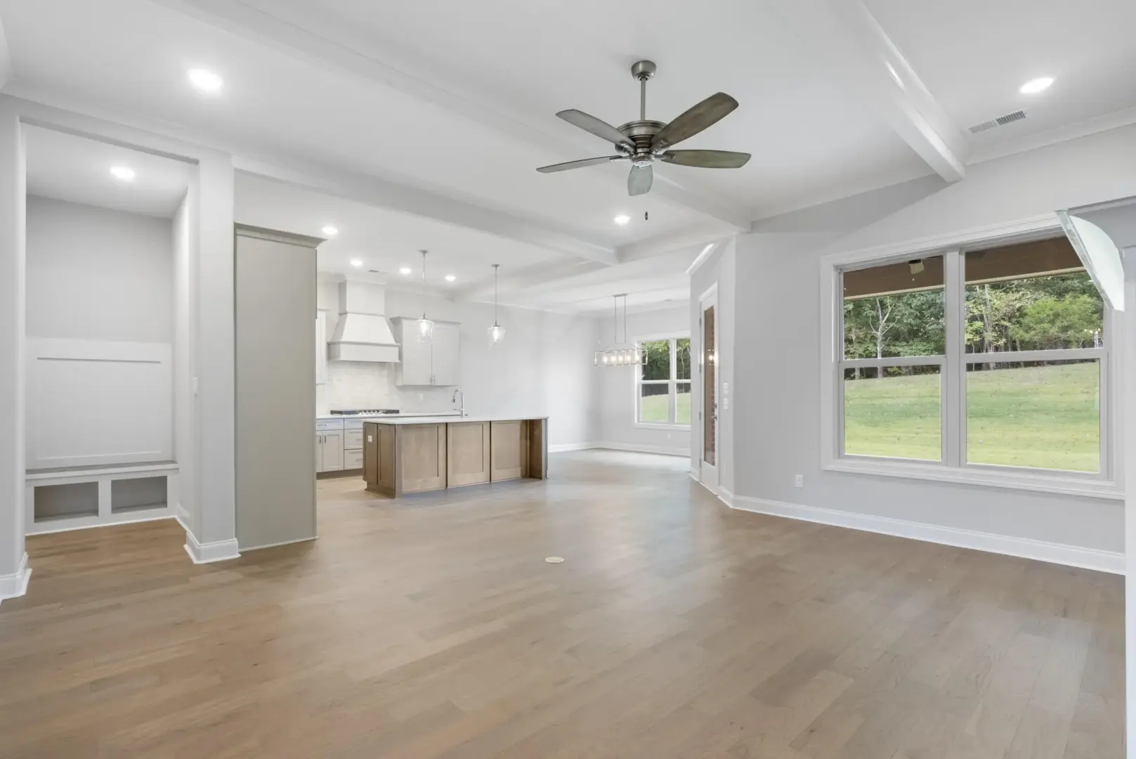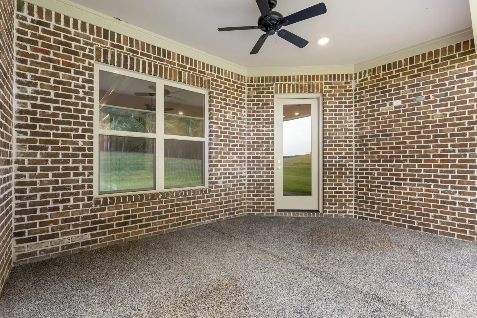 Covered back patio, recessed lighting, tech-shield roof decking, and spray foam insulation